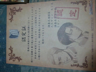 認定証欲しさにグッズ買ったんだけどミカサの。