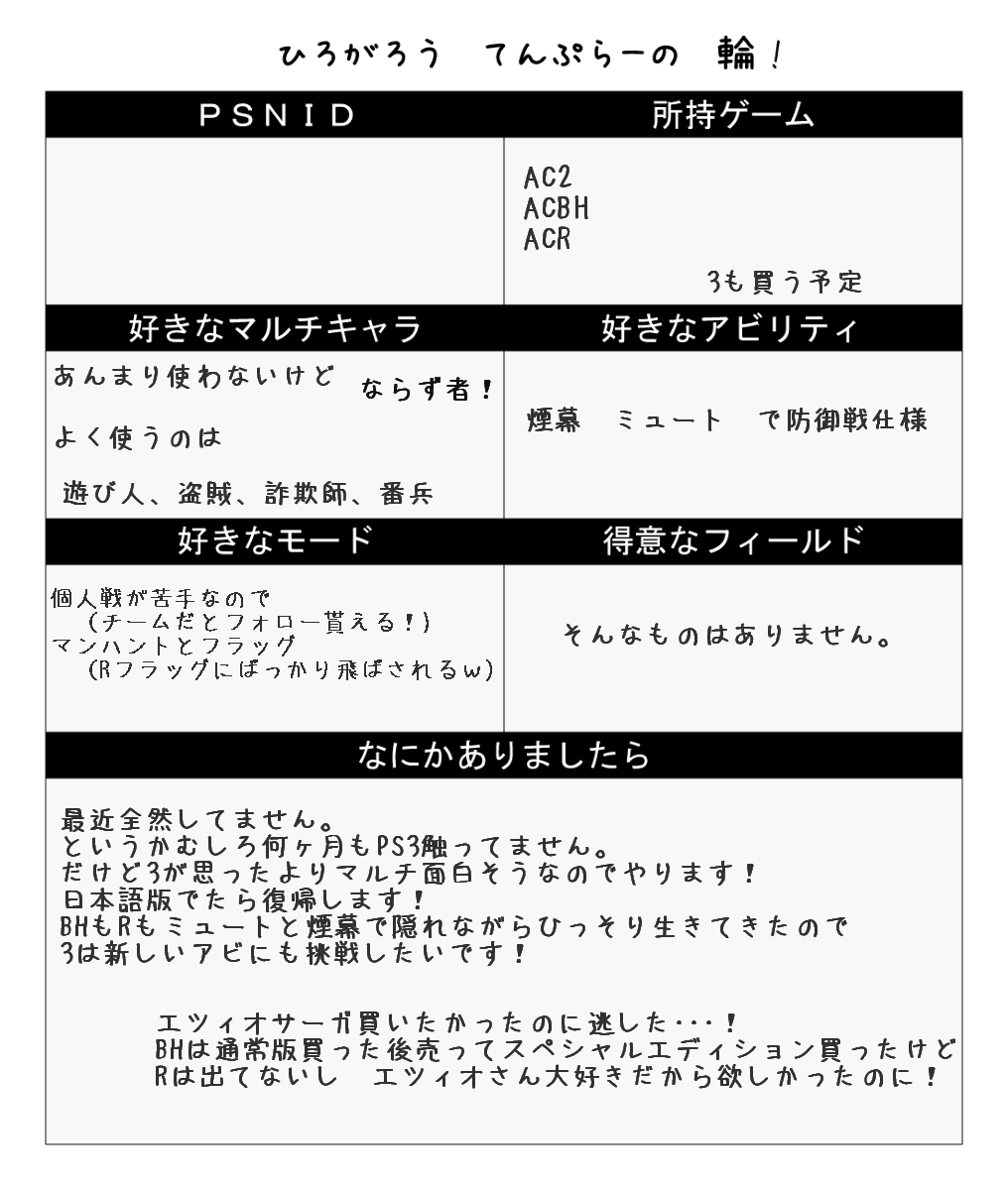 クリック原寸大。ピクシブの企画だったんだけど3発売前に書いてたけど結局PSIDさらすのがチョット恥かしかったのでやめたブツ。